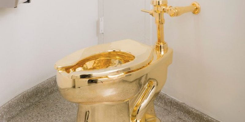 "The curator’s alternative: an 18-karat, fully functioning, solid gold toilet - an interactive work entitled 'America' that critics have described as pointed satire aimed at the excess of wealth in this country," said the Post.