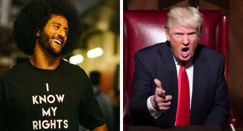 Civil rights icon Colin Kaepernick and President Donald Trump, composite image. Kaepernick photo by Katrina B. Davis / Facebook and screengrab of Donald Trump from "The Apprentice"