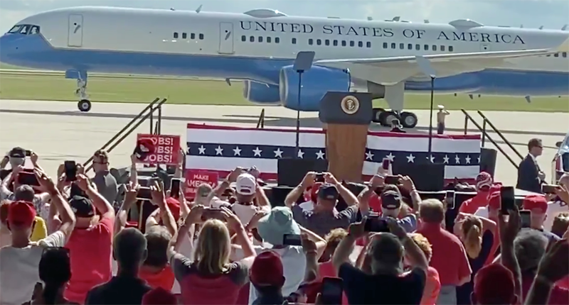 Trump supporters take pictures of Air Force One during a rally in Oshkosh (screengrab)