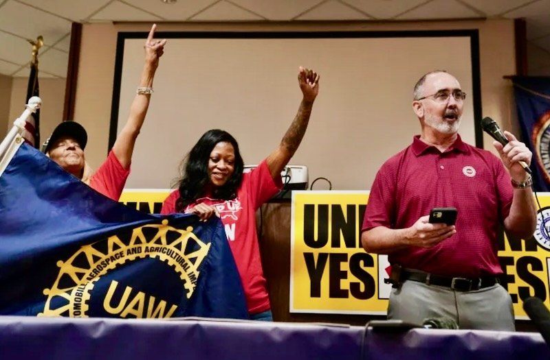 During the Vance rally, more than a dozen people wore "auto workers for Trump" t-shirts, according to the report.