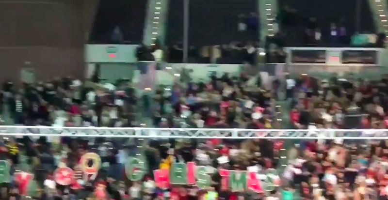 To provide fuller context, we have included video below. The upper deck behind the stage is not full in any of the photos.