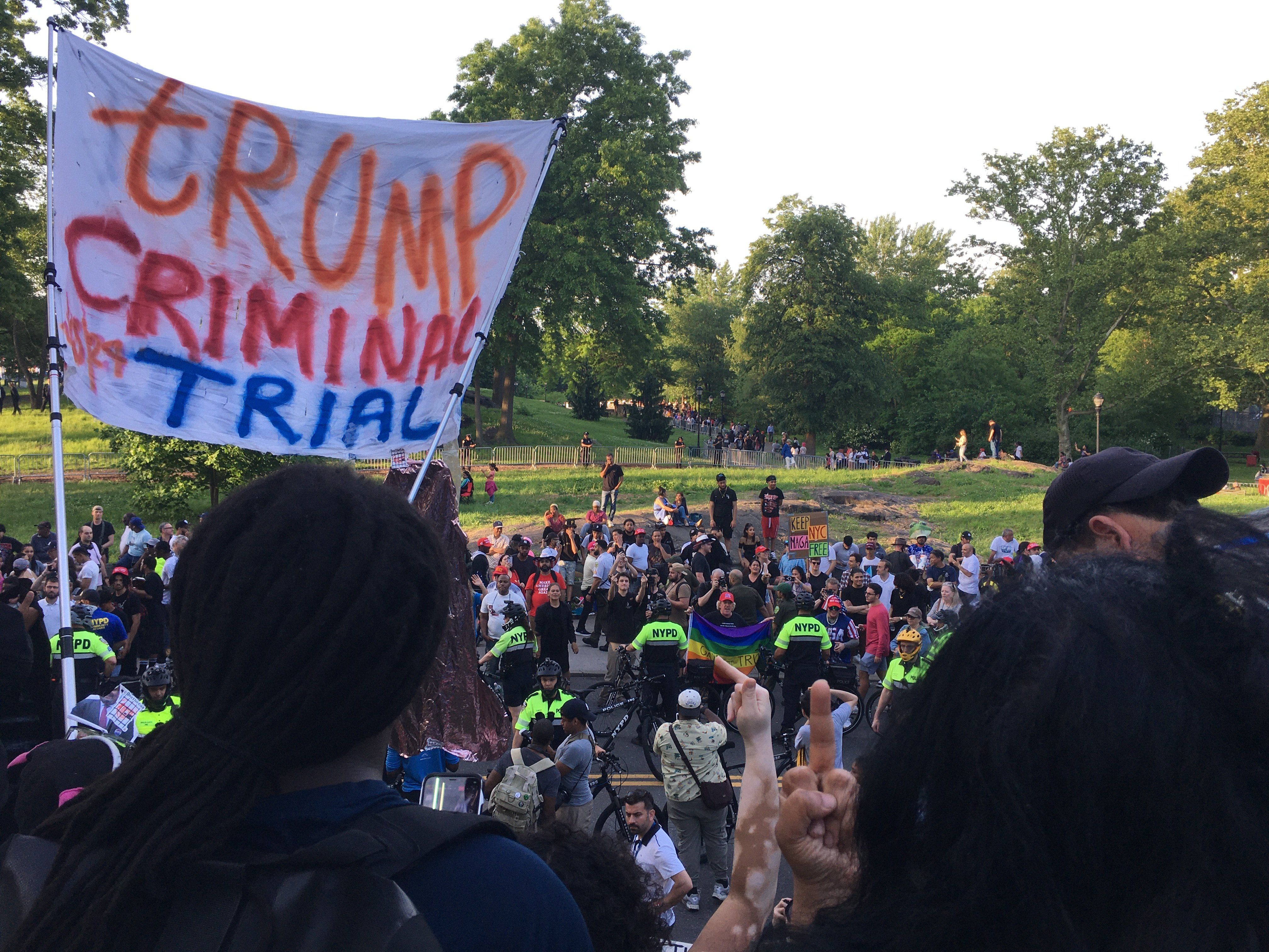 Protesters clash outside former President Donald Trump's rally in the Bronx on May 23, 2024. (Kathleen Culliton, Raw Story)