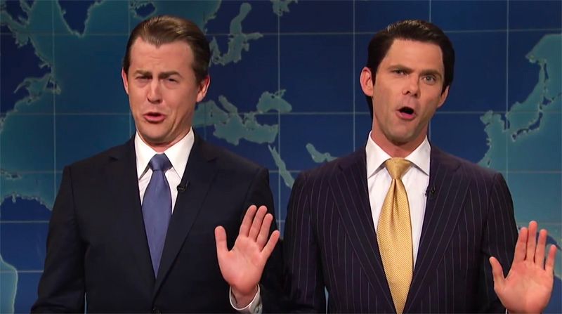 The bumbling Saturday Night Live Trump brothers, Don Jr. and Eric -- played by Alex Moffat and Mikey Day -- returned to the late-night comedy show to bring viewers up to date about what they have been doing since the show was on hiatus as well as attempt to dismiss a New York Times report that the entire family is up to their necks in tax avoidance.