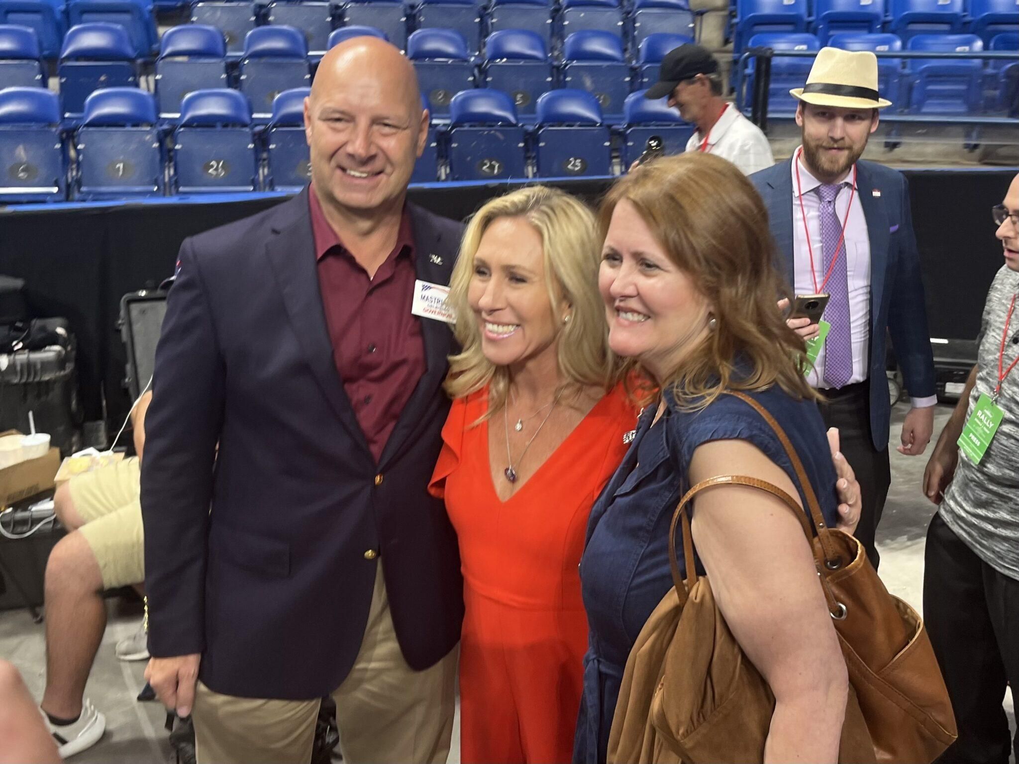 The rally featured another star of the far-right, U.S. Rep. Marjorie Taylor Greene, R-Ga., who also made the baseless claim that Trump won in 2020.