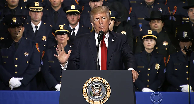 President Donald Trump speaks to police officers (Photo: Screen capture)