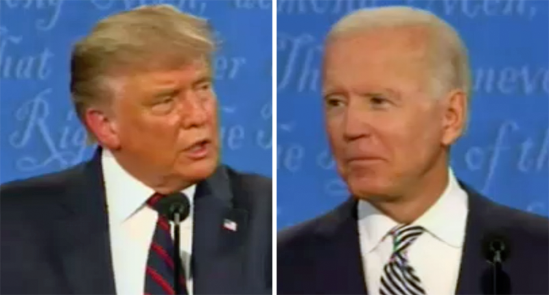 Donald Trump and Joe Biden at the first 2020 general election debate (screengrab)