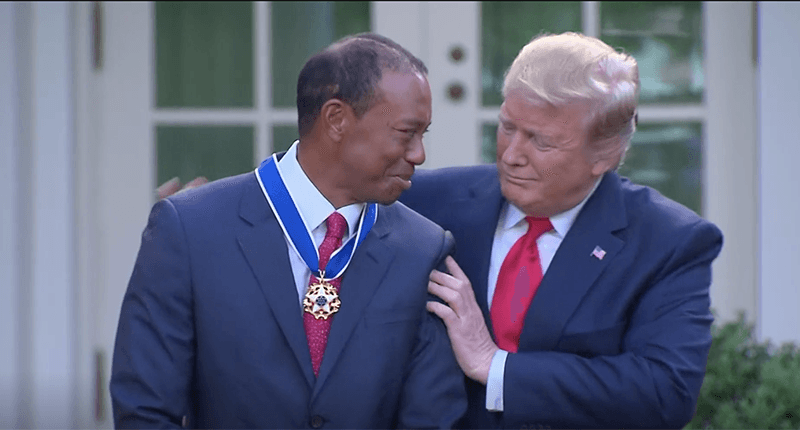 He also noted that he found it unusual Woods would accept the award when he has such a different philosophy about golf than Trump.