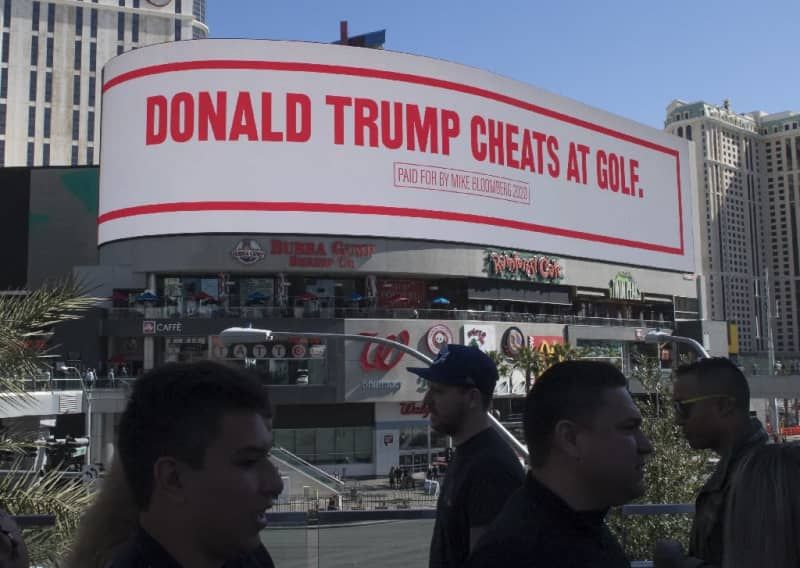 Las Vegas (AFP) - Democratic White House hopeful Michael Bloomberg mocked Donald Trump with a giant billboard on the Las Vegas Strip on Friday, fueling their feud as the US president visits the city for a rally."Donald Trump lost the popular vote," read one slogan on the world-famous street lined with casinos, while another read "Donald Trump's wall fell over."The giant digital billboard is just two miles (three kilometers) down the Strip from Trump's own hotel, where the president is staying while in Las Vegas.Bloomberg is vying for the Democratic nomination to take on Trump at November's ele...