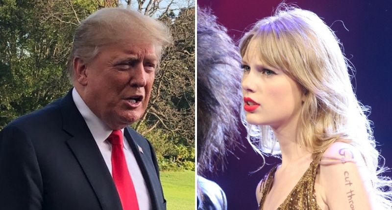 President Donald Trump (left, via Twitter) and singer Taylor Swift (right, via Wikimedia Commons).