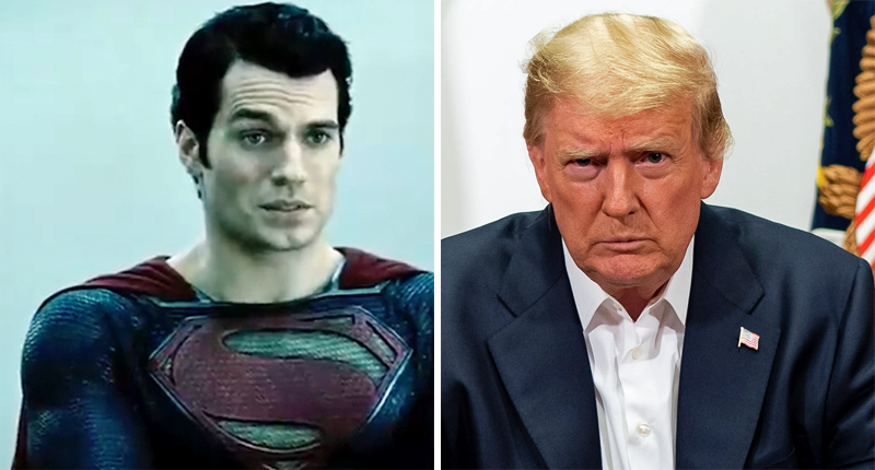 Composite image. Henry Cavill as Superman (screengrab) and White House photo of Donald Trump by Tia Dufour.