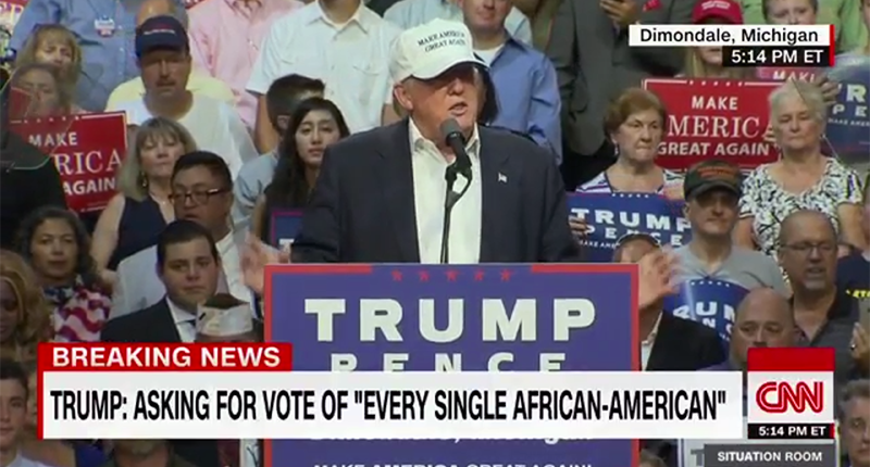 In a suburb outside of Lansing, Trump asked his audience what African-Americans have to lose by voting for him. “What do you have to lose by trying something new, like Trump?”