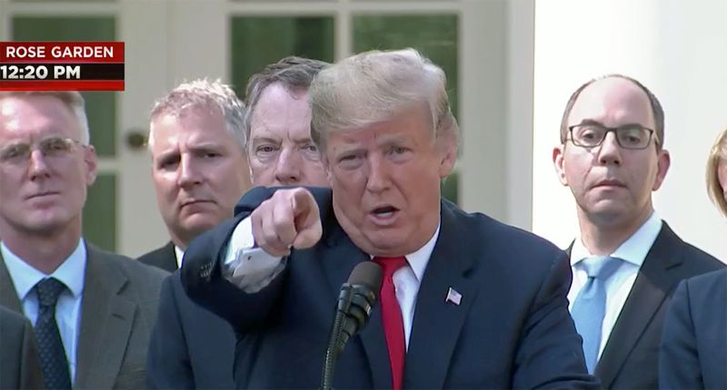 President Donald Trump speaking at a Rose Garden press conference, screengrab.