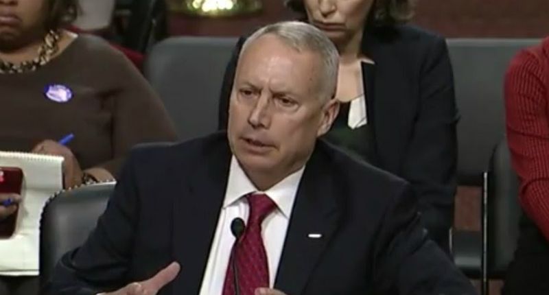 Former Trump defense nominee Dean L. Winslow during his Senate confirmation hearing. Image via screengrab.