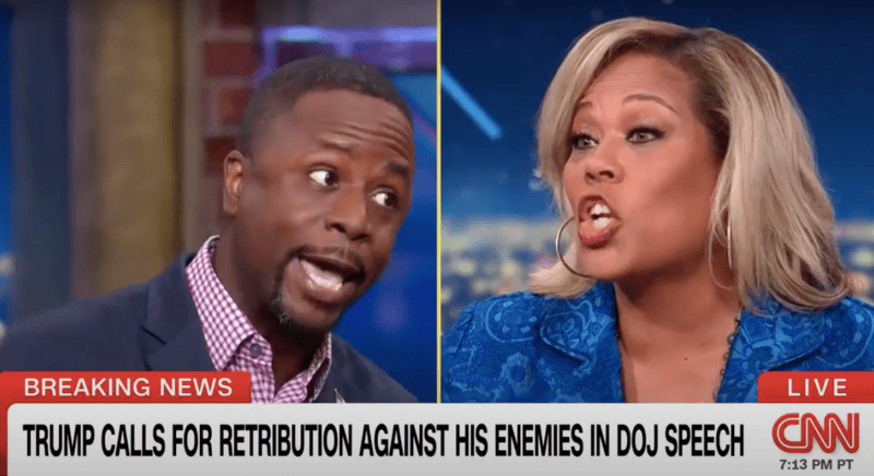 President Donald Trump’s controversial speech at the Department of Justice on Friday sparked a fiery CNN debate between two guests that sent accusations flying over a weaponized Justice Department, under Joe Biden and the current administration, and left the host struggling to keep order.