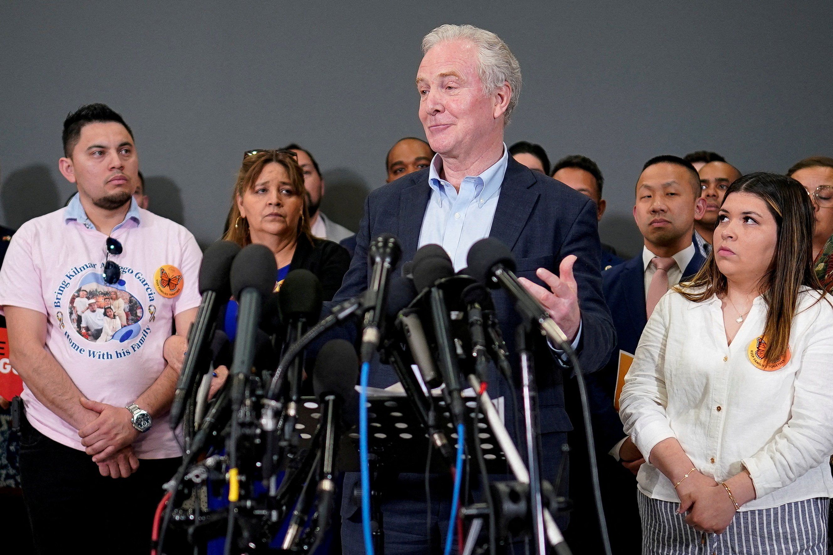 Maryland Sen. Chris Van Hollen (D-MD) traveled to El Salvador in April to try to make contact with Abrego Garcia and check on his well being.