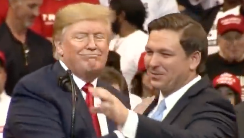 Donald Trump and Ron DeSantis at a campaign rally in November. (YouTube)
