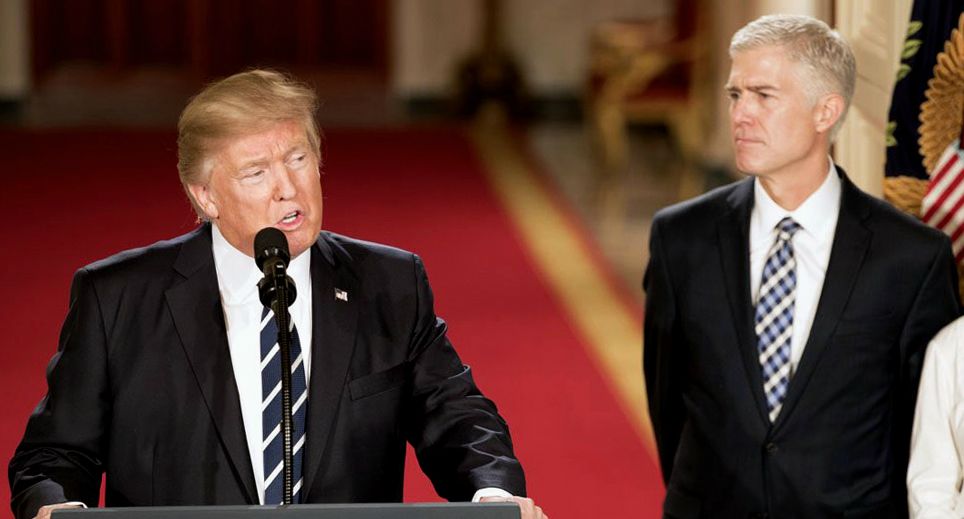 President Donald Trump (left) and his Supreme Court nominee Neil Gorsuch (right). Image via Wikimedia Commons.
