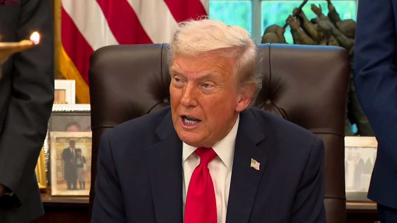 After The New York Times reported that Trump was demanding that his Justice Department pay him $230 million in a settlement, the president was asked about the claim at the White House on Tuesday.