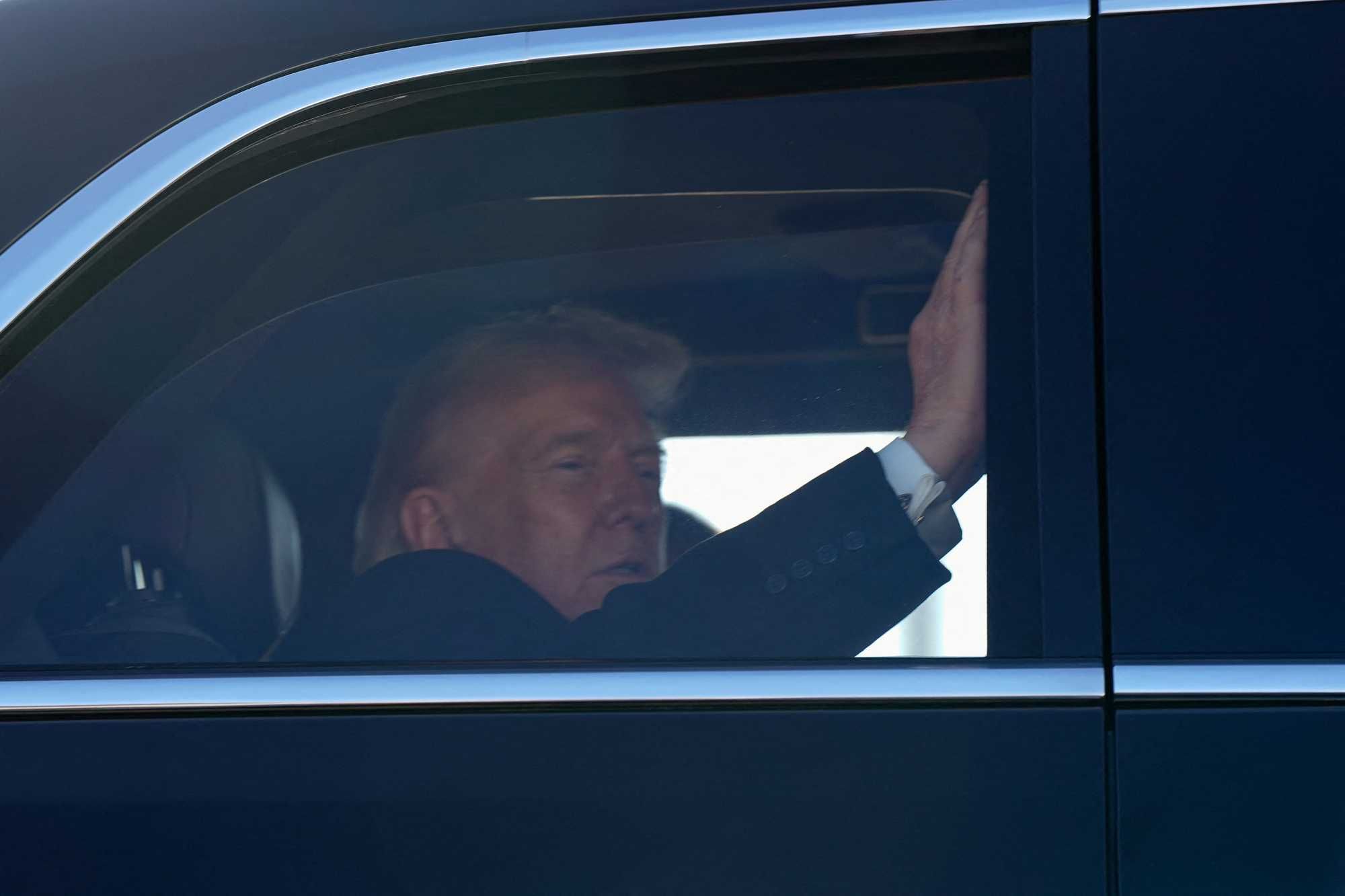 Donald Trump looks on from inside a vehicle at Fort Bragg, North Carolina. REUTERS/Elizabeth Frantz
