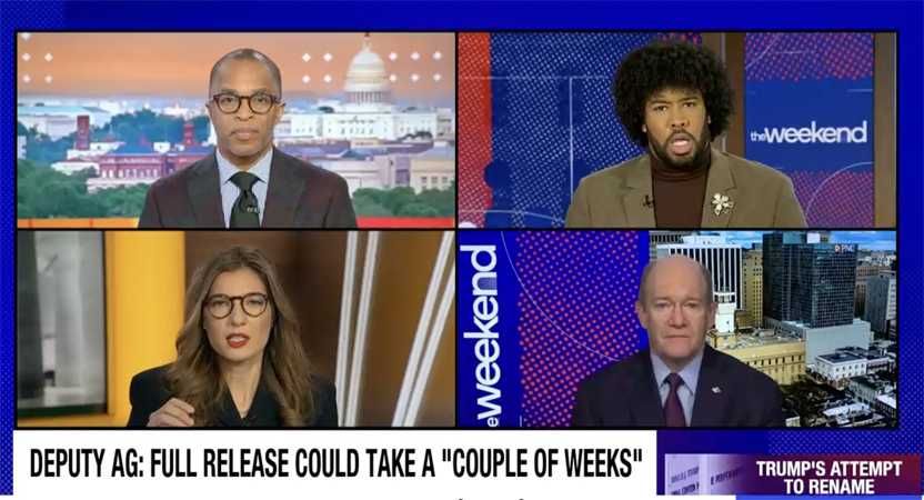 Sen Chris Coons (D-DE) sent the hosts and producers of MS NOW’s “The Weekend” scrambling after he pointed to a photo of a check from Donald Trump to Jeffrey Epstein in payment for a woman that was included in the just-released Epstein files.