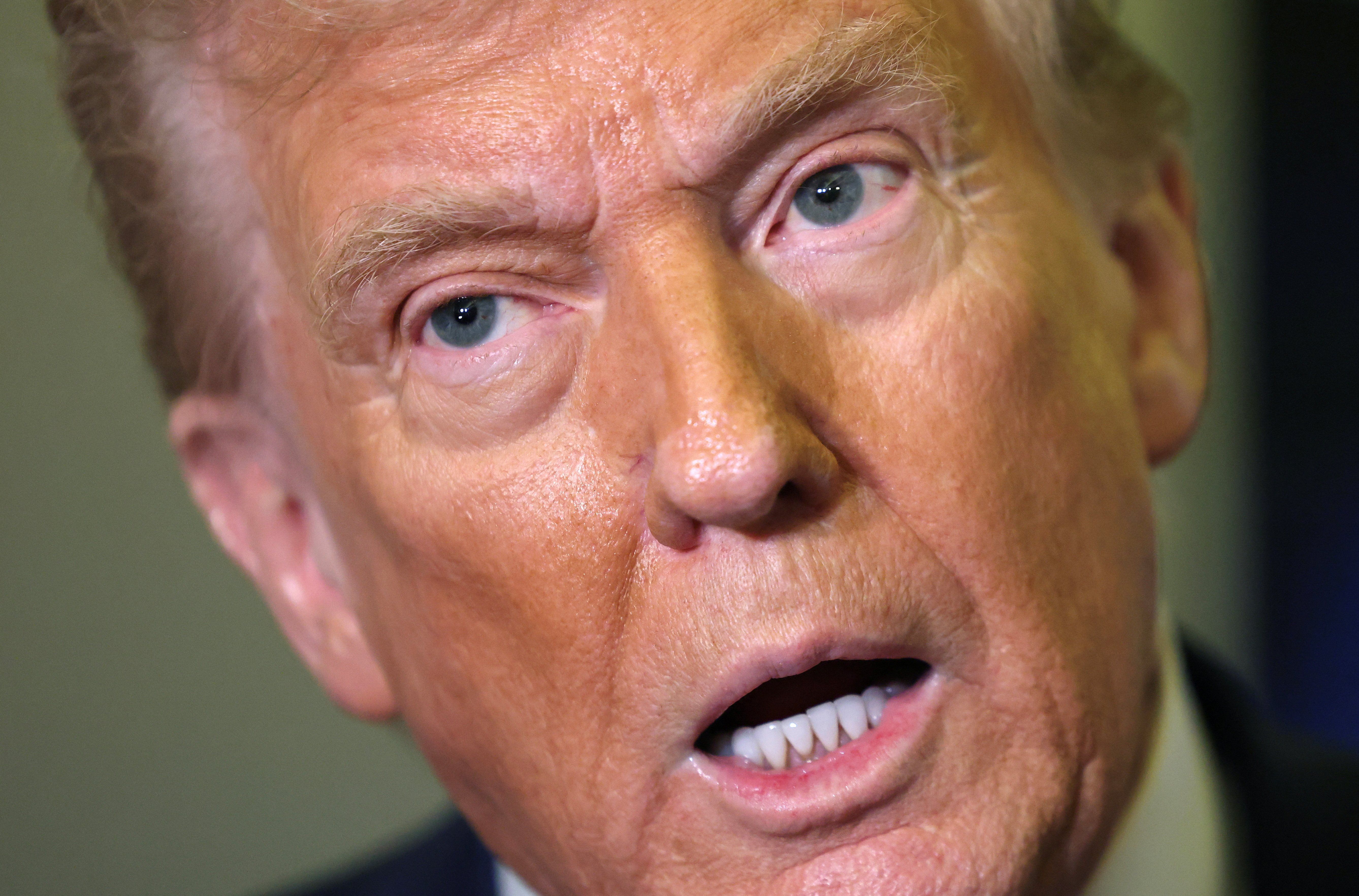 U.S. President Donald Trump speaks to reporters aboard Air Force One on his return to Washington, D.C., U.S., March 9, 2025. REUTERS/Kevin Lamarque