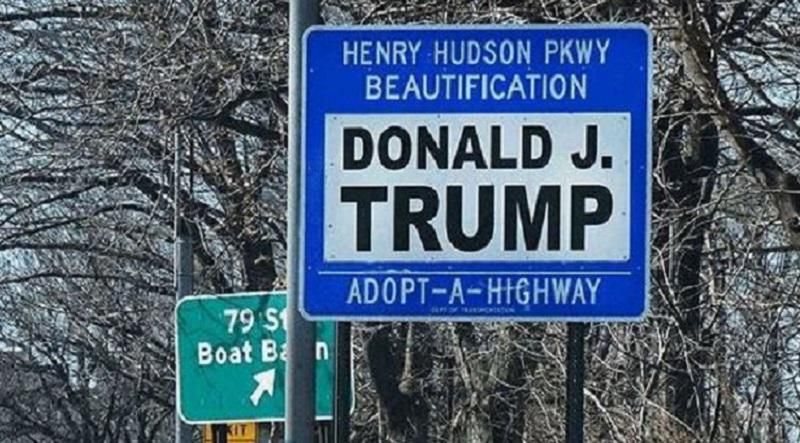 Former President Donald Trump's name will be taken down from an Adopt-a-Highway sign located along the Henry Hudson Parkway in New York City.