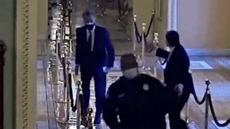 One of the videos showed Capitol Police Officer Eugene Goodman leading Sen. Mitt Romney (D-UT) to safety during the attack.