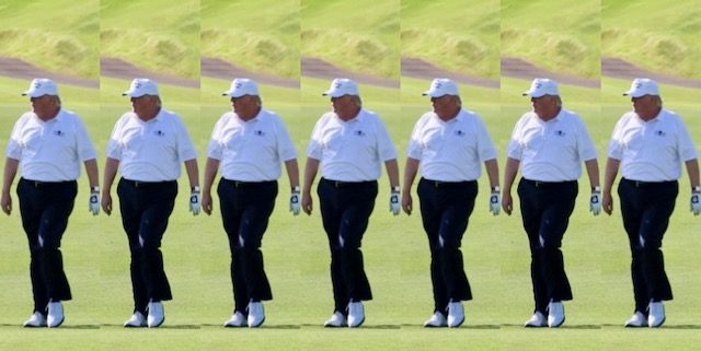 "Where was Trump? He wasn't distracted," the narrator says of Trump. "He had plenty to do, like campaign rallies and golfing."