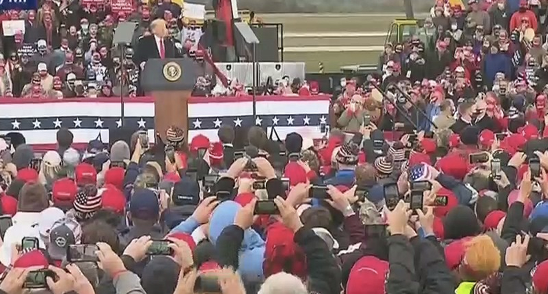At his Saturday rally, he mocked her support of people wearing masks to help prevent the spread of the COVID-19 pandemic. The crowd began chanting, "lock her up," a theme they often used when Trump brought up former Sec. Hillary Clinton.