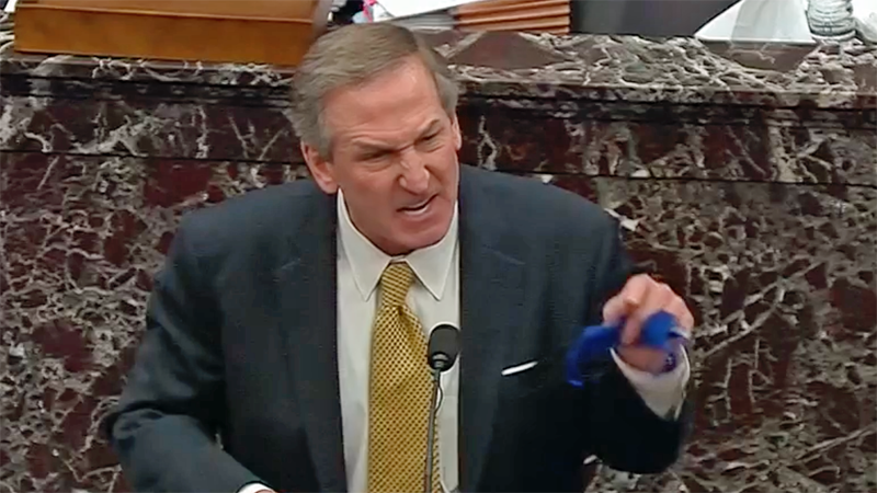 Trump defense attorney Michael van der Veen angrily reacted to a question about Israel during the question and answers period of Friday's impeachment trial.