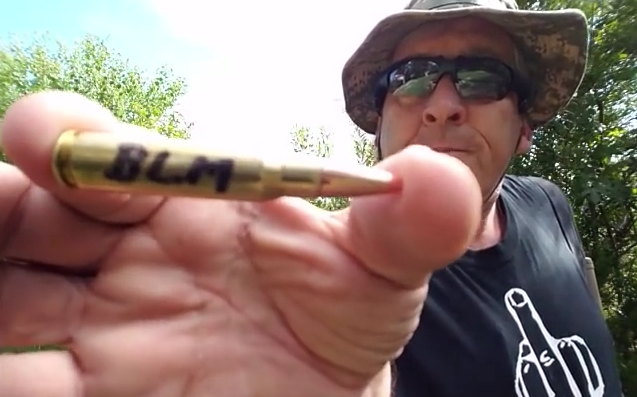 To further emphasize his point, he took out a bullet with the initials "BLM" written on it to show that it is intended for Black Lives Matter activists.