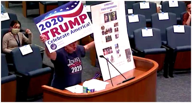 Trump-loving woman unleashes a wild rant -- and then sings -- at county board meeting over vote to wear masks