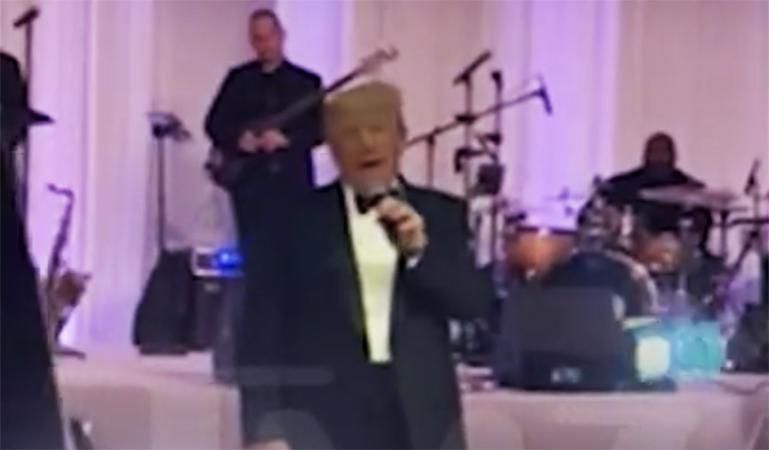 In a video obtained by TMZ, former president Donald Trump was filmed complaining about the man who replaced him in the White House during an appearance at a wedding reception at his Mar-a-Lago resort on Saturday night.