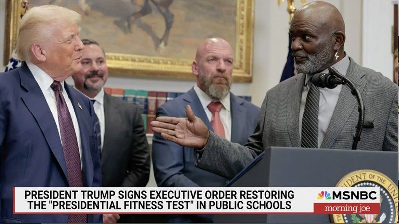 Donald Trump's choice of "athletes" to surround himself with as he announced the return of the Presidential Fitness Test got a big thumbs down on MSNBC on Friday morning, with several of his choices called out as "problematic."