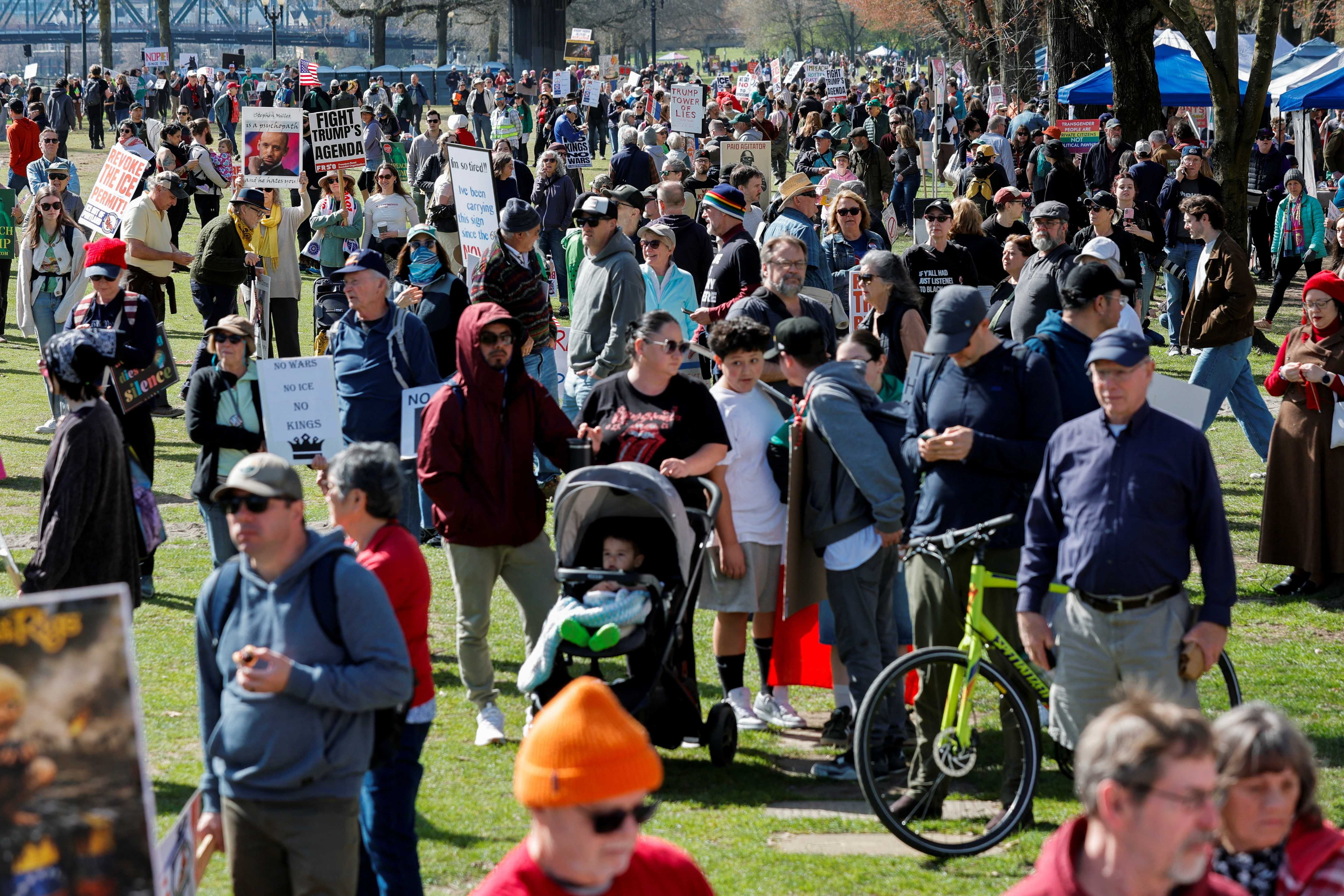 People gather for a "No Kings" protest against U.S. President Donald Trump's administration policies, in Portland, Oregon, March 28, 2026. REUTERS/John Rudoff