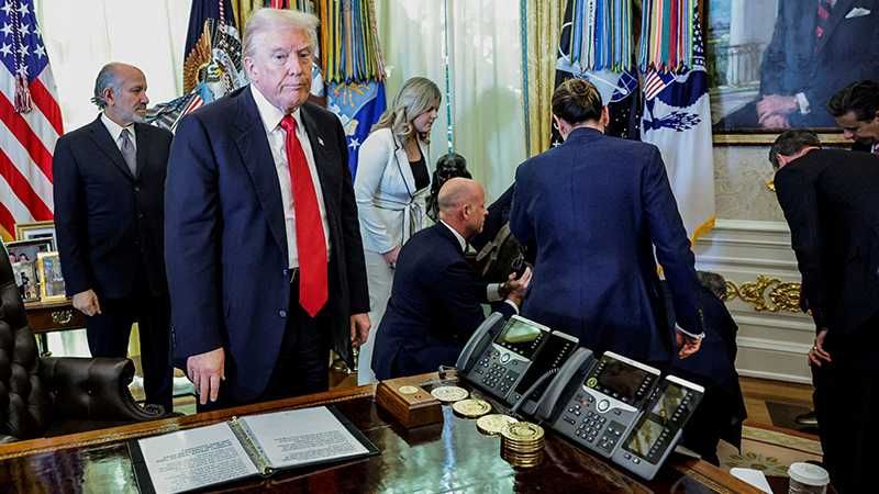 President Donald Trump gathered pharmaceutical giants to the Oval Office on Thursday to discuss weight loss drugs when Novo Nordisk executive Gordon Findlay collapsed. Trump stood from the desk, looming over the situation as Dr. Mehmet Oz rushed to the man. Trump was then photographed turning away from the scene, looking disappointed.