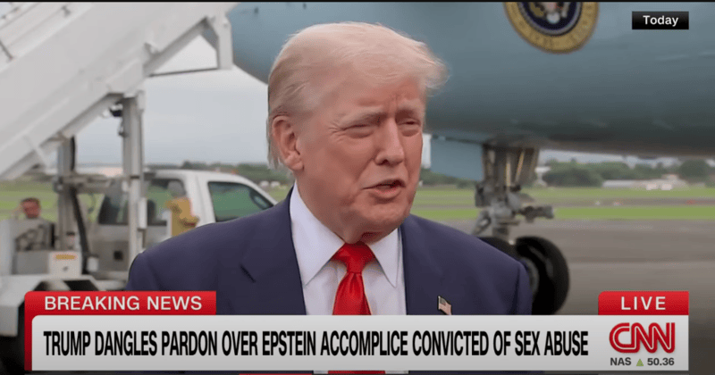 President Donald Trump denied considering a pardon for convicted sex trafficker Ghislaine Maxwell, telling reporters he "hasn't thought about it" while acknowledging he has the power to do so. But CNN anchor Erin Burnett fired back Friday evening on her show, highlighting a montage of Trump’s past comments echoing similar pardon sentiments — for people whom he later granted clemency.
