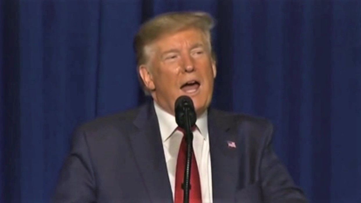 "In all things, we are putting our country first," the president said. "We are saying, let’s say 'Make America great again,' but we are almost there, 'Make America great again.' We may have to switch it. You know what we’re going to switch it to? Huh? Yeah? That is right. I will not say it here, because this is not a campaign speech."