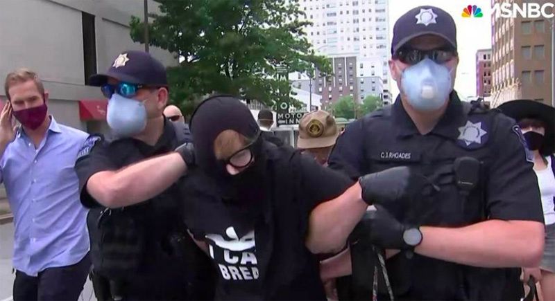 The arrest of Sheila Buck was broadcast live on MSNBC on Saturday.