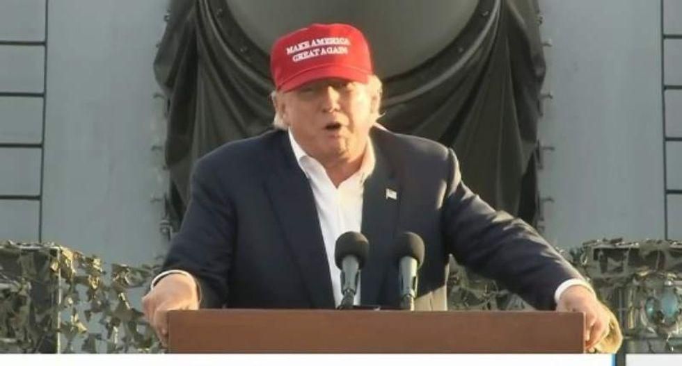 Donald Trump appears at a fundraiser held onboard the USS Iowa. [MSNBC]