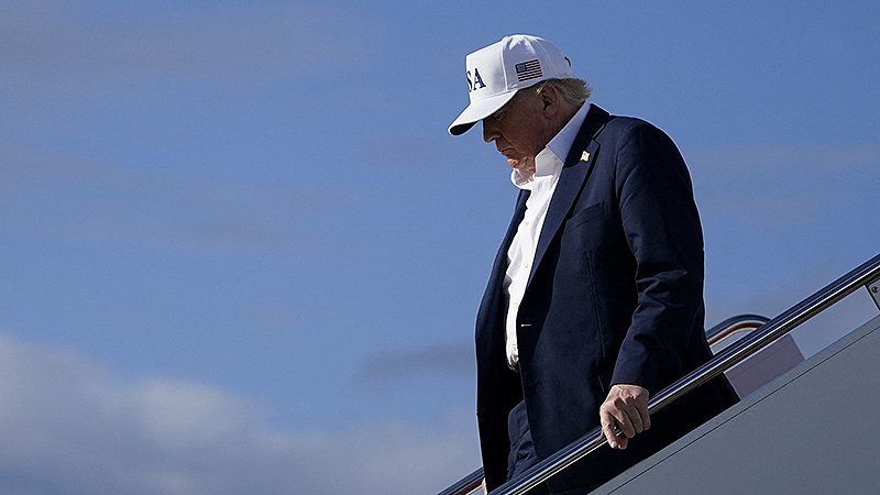 U.S. President Donald Trump disembarks Air Force One as he arrives at Joint Base Andrews, Maryland, U.S, July 6, 2025. REUTERS/Nathan Howard