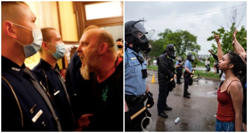 Protests over the police killing of George Floyd, a 46-year-old Black man, were met by officers wearing riot gear and deploying tear gas, and some demonstrators set fires and vandalized stores -- which prompted a violent threat from the president.