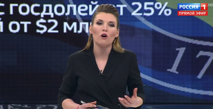 Julia Davis, who runs the Russian Media Monitor website, reports via Twitter that Russian TV show host Olga Skabeeva on Tuesday was positively gushing about the White House's decision to not enforce new sanctions against her country.