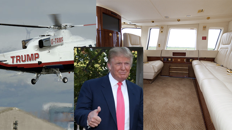 Trump helicopter (Photos: Belfast City Airport, shutterstock and sales listing)