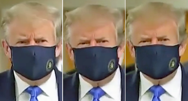 For the first time, President Donald Trump wore a mask in front of the White House press corps during a Saturday visit to Walter Reed Hospital.
