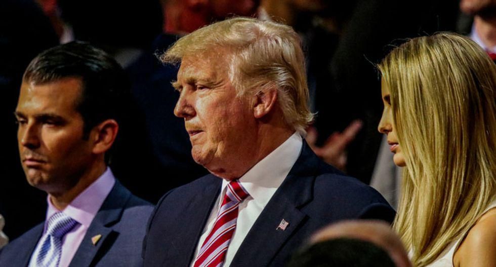 Donald Trump Jr., Donald Trump and Ivanka Trump stand together during the Republican National Convention. (Shutterstock)