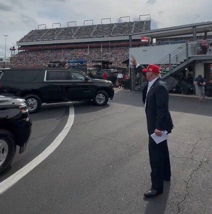 Margo Martin, the Deputy Director of Communications for Donald J. Trump for President, posted the video to her social media, writing, "President [Trump] arrives at Charlotte Motor Speedway!"
