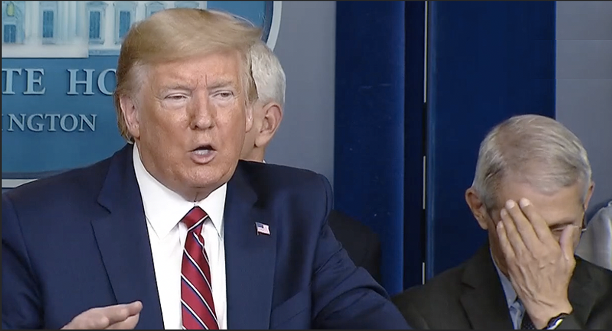 The day before the town hall, during a coronavirus task force briefing, Trump said, "I'm talking about where people suffer massive depression, where people commit suicide, where tremendous death happens… I mean, definitely would be in far greater numbers than the numbers that we're talking about with regard to the virus."