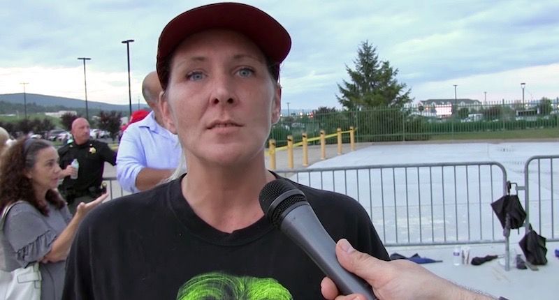In the video, interviewer Eric Byler asks Trump supporters outside the Mohegan Sun Arena in Wilkes-Barre, Penn. where they stand.
