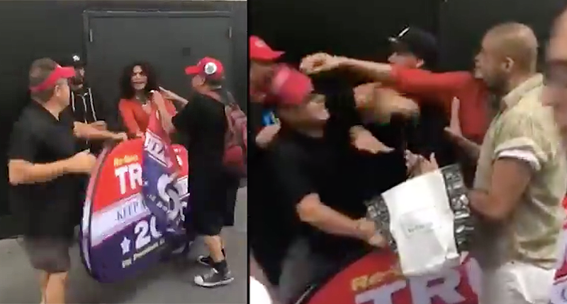 According to TMZ, Moore saw the supporter holding up his sign and a fight broke out. It's unclear what the verbal exchange was between the two prior to punches being thrown. Moore, who identifies as transgender as well as non-binary, was captured on video stomping on the Trump sign expressing faux concern.